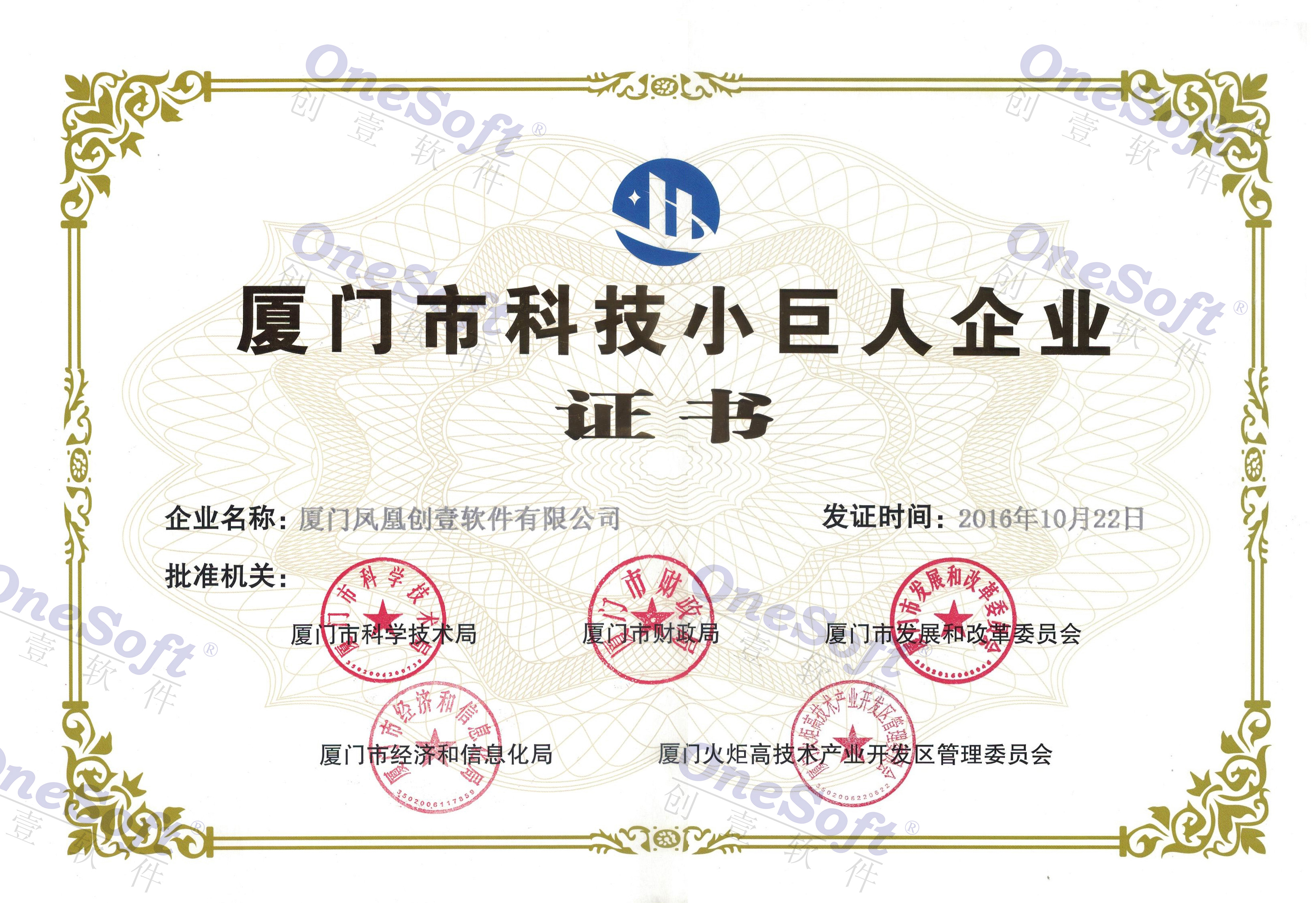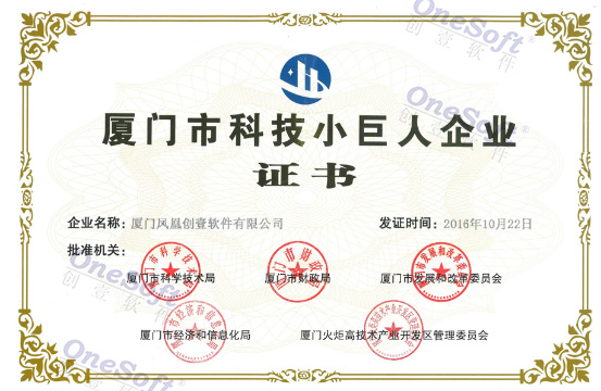 廈門(mén)市科技小巨人企業(yè)證書(shū)