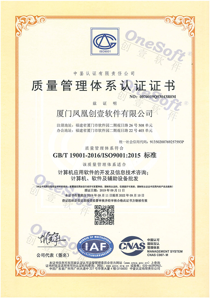 質(zhì)量管理體系認(rèn)證證書(shū)