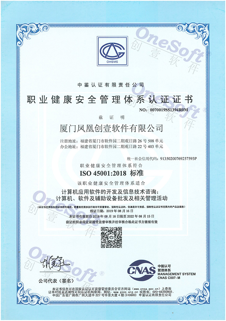 職業(yè)健康安全管理體系認(rèn)證證書(shū)-ISO45001