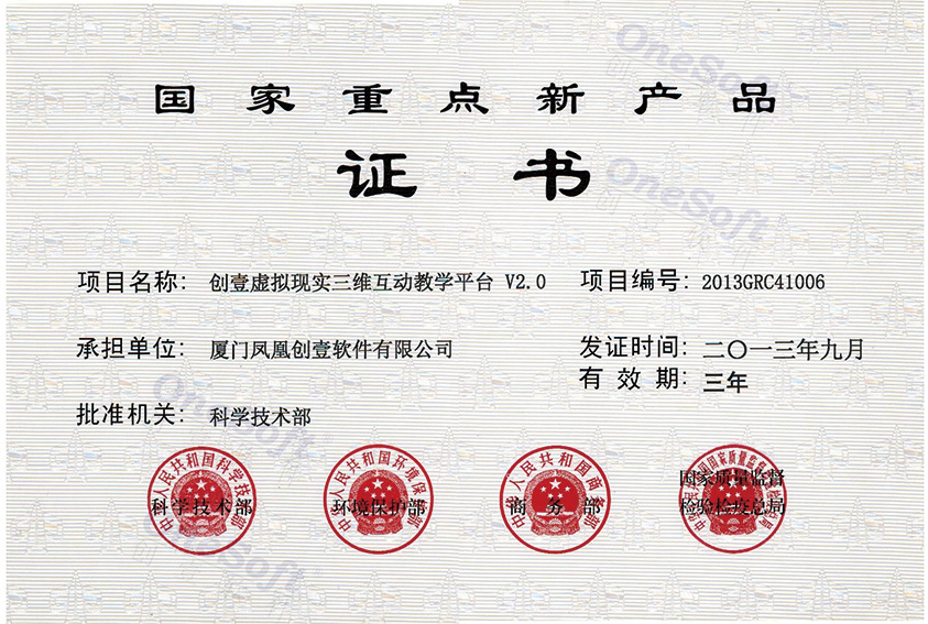 國(guó)家重點(diǎn)新產(chǎn)品證書(shū)