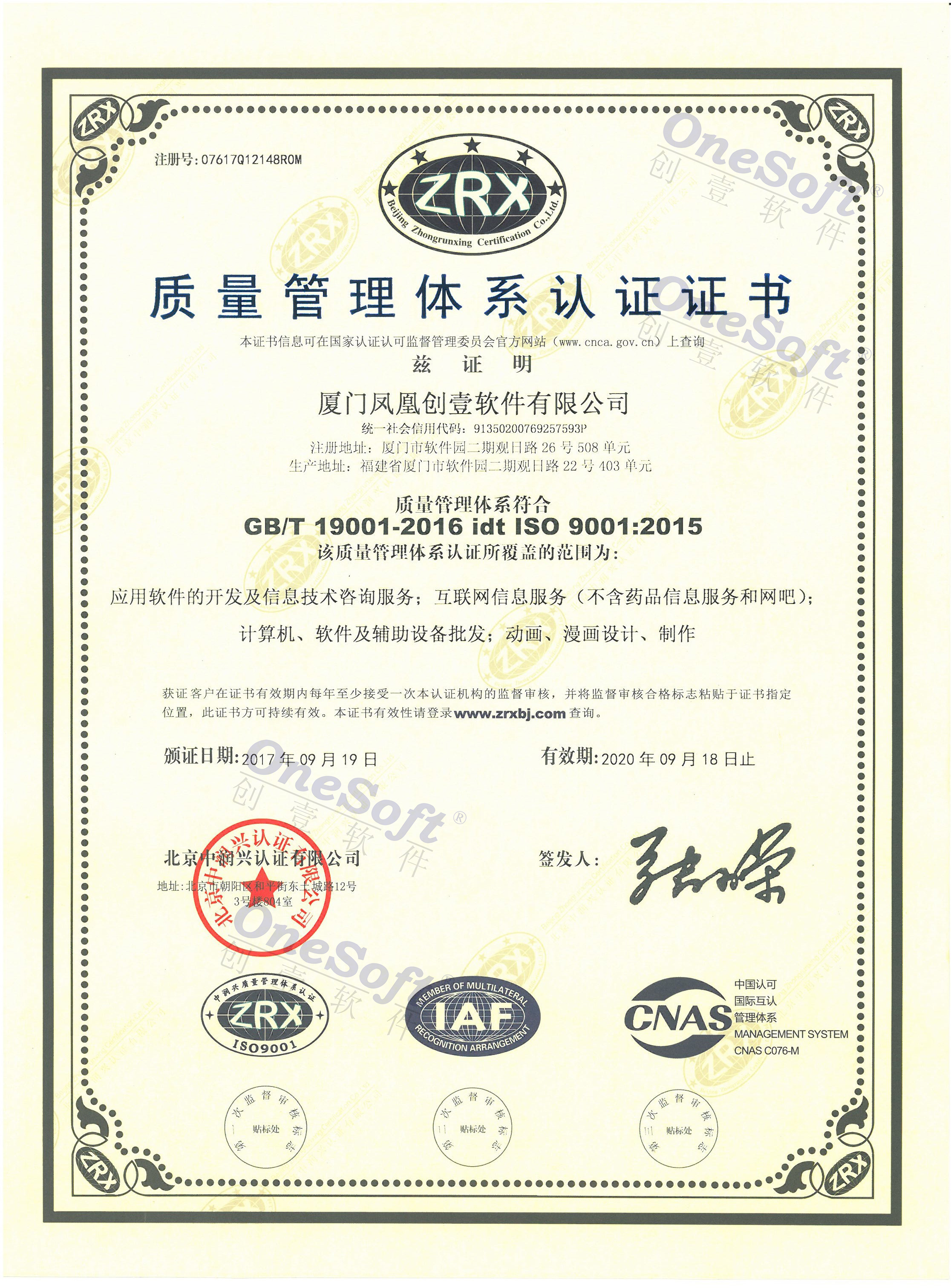 2017年質(zhì)量管理體系認(rèn)證證書(shū)