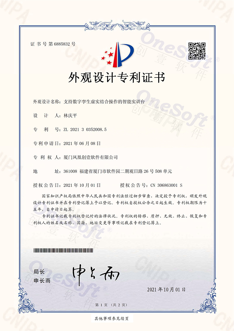 鳳凰創(chuàng)壹智能實(shí)驗(yàn)臺(tái) (外觀(guān)設(shè)計(jì)專(zhuān)利證書(shū))