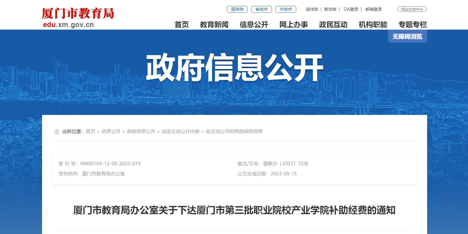 廈門市教育局發(fā)布下達(dá)廈門市第三批職業(yè)院校產(chǎn)業(yè)學(xué)院補(bǔ)助經(jīng)費(fèi)通知