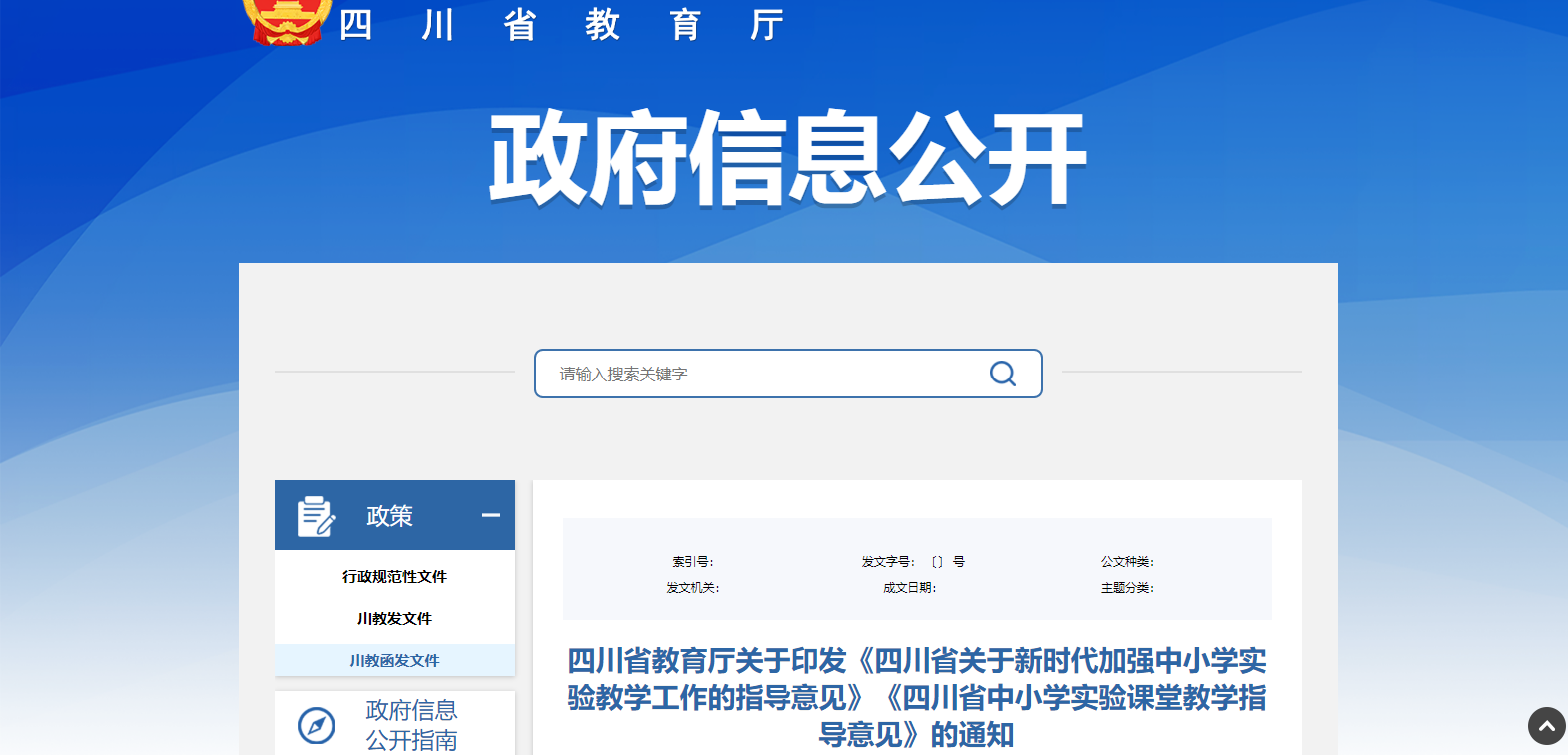 四川省教育廳關(guān)于印發(fā) 《四川省關(guān)于新時(shí)代加強(qiáng)中小學(xué)實(shí)驗(yàn)教學(xué)工作 的指導(dǎo)意見》《四川省中小學(xué)實(shí)驗(yàn)課堂教學(xué) 指導(dǎo)意見》的通知